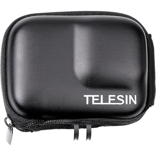 Kompaktowa, mini torba transportowa EVA do kamery GoPro HERO 9/10/11/12/13 firmy TELESIN to lekka, formowana nylonowa obudowa z częściowym zamkiem błyskawicznym, która pozwala na pozostawienie jej na miejscu, gdy kamera jest zamontowana na kijku do selfie lub małym statywie. Ta półsztywna, wodoodporna obudowa zapewnia dodatkową amortyzację wokół obiektywu kamery.